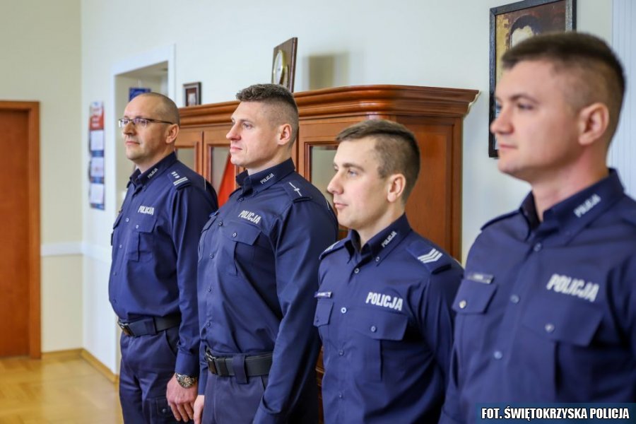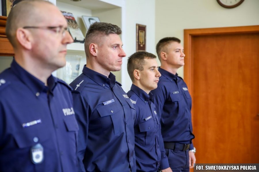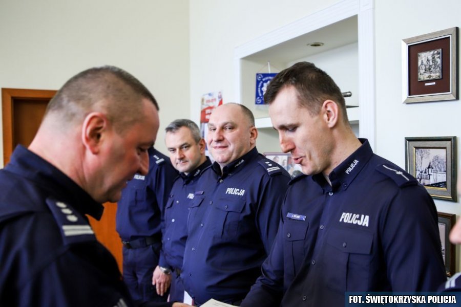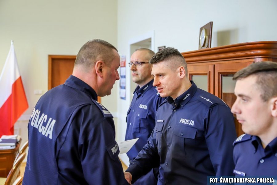 Pełniący obowiązki Komendanta Wojewódzkiego Policji w Kielcach insp. Paweł Dzierżak oraz Pierwszy Zastępca Komendanta Wojewódzkiego Policji w Kielcach insp. Artur Bielecki w obecności przełożonych wyróżnionych funkcjonariuszy podziękowali im za wzorowe wykonywanie obowiązków służbowych oraz życzyli dalszych sukcesów.