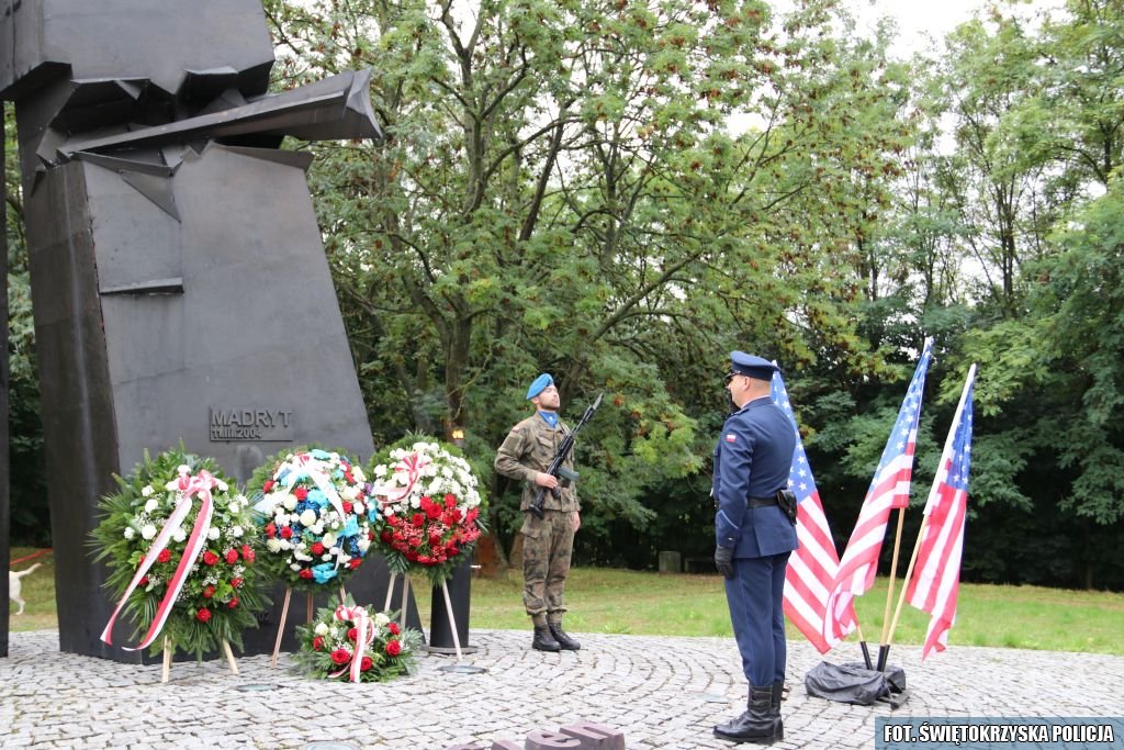Dzisiaj w Kielcach odbył się uroczysty apel upamiętniający XXIV rocznicę zamachu na World Trade Center. Udział w wydarzeniu wzięli przedstawiciele lokalnych władz i mieszkańców miasta. Nie zabrakło przedstawicieli służb mundurowych, w tym sił zbrojnych USA. Wiązankę w imieniu Komendanta Wojewódzkiego Policji w Kielcach złożył podinsp. Rafał Radomski.