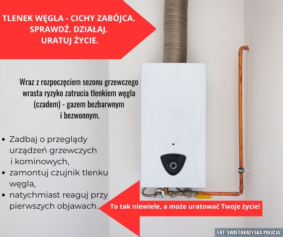 Wraz z rozpoczęciem sezonu grzewczego wzrasta ryzyko zatrucia tlenkiem węgla (czadem) — gazem bezbarwnym i bezwonnym. Zadbaj o przeglądy urządzeń grzewczych i kominowych, zamontuj czujnik tlenku węgla oraz natychmiast reaguj przy pierwszych objawach — to najprostsze kroki, które ratują życie.