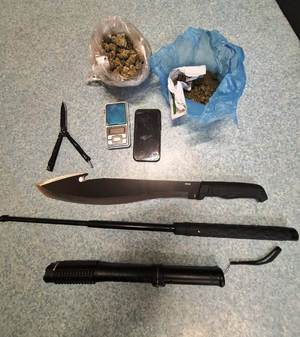 W mieszkaniu jednego z 22-latków dodatkowo ujawniono niebezpieczne przedmioty m.in. maczetę, pałkę teleskopową oraz urządzenie do obezwładniania energią elektryczną tzw. paralizator. Funkcjonariusze ustalają cel ich posiadania oraz czy nie zostały użyte do popełnienia przestępstwa.
