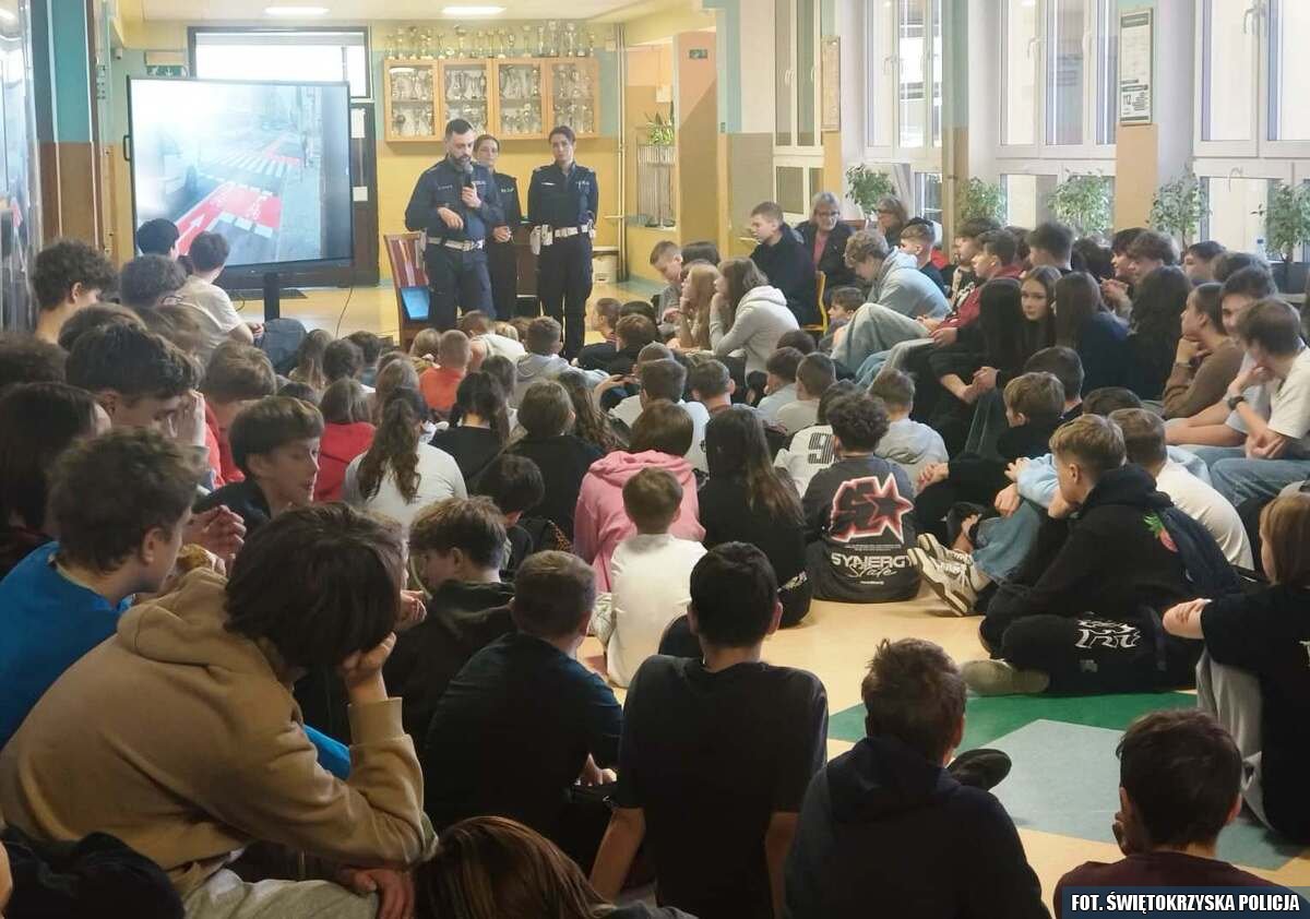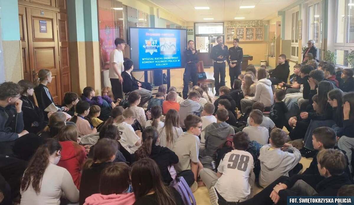 W związku z popularnością korzystania z hulajnóg elektrycznych zwłaszcza przez dzieci i młodzież, a wraz z nią rosnącą liczbą zdarzeń drogowych z udziałem małoletnich, funkcjonariusze Wydziału Prewencji oraz Wydziału Ruchu Drogowego Komendy Miejskiej Policji Kielcach zagościli z wizytą w szkołach podstawowych. Jedną z nich była Szkoła Podstawowa w Bilczy. Podczas spotkania głównym celem policjantów była poprawa bezpieczeństwa oraz zwiększenie świadomości użytkowników hulajnóg. Mundurowi zachęcali do rozwagi, jazdy w kasku i przestrzegania przepisów ruchu drogowego, aby każda podróż hulajnogą kończyła się bezpiecznie dla wszystkich uczestników ruchu.