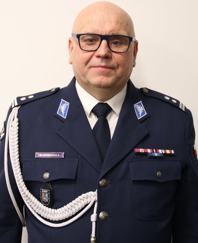 Mł. insp. Grzegorz Chuchmała służbę w Policji rozpoczął w 2004 roku w Komendzie Powiatowej Policji w Opatowie. Absolwent Akademii Świętokrzyskiej w Kielcach oraz Wyższej Szkoły Policji w Szczytnie.