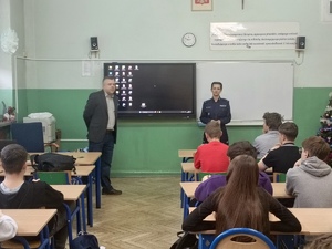 Spotkanie na temat przeciwdziałania handlowi ludźmi z uczniami szkoły mundurowej