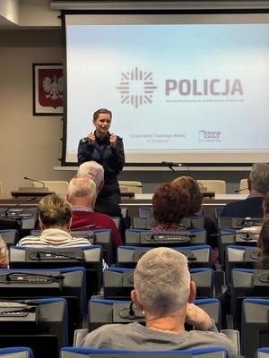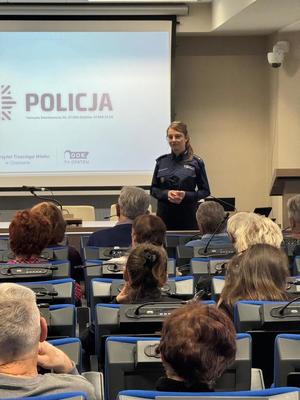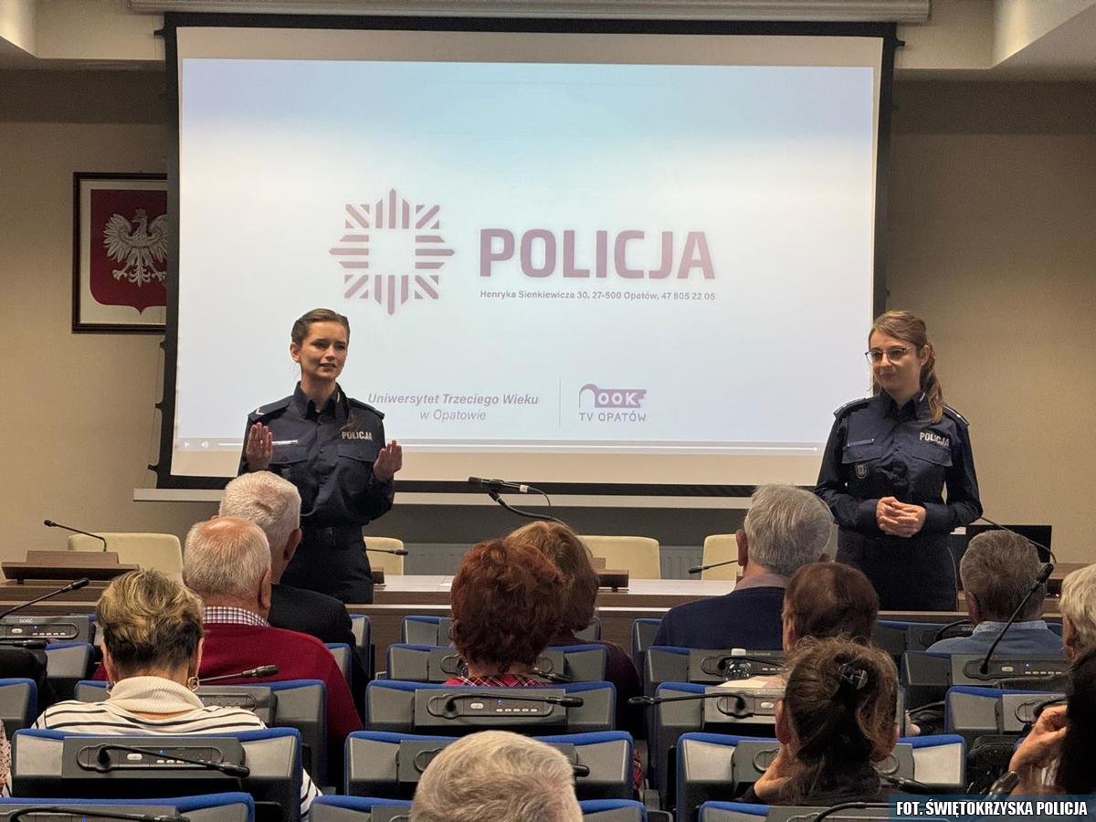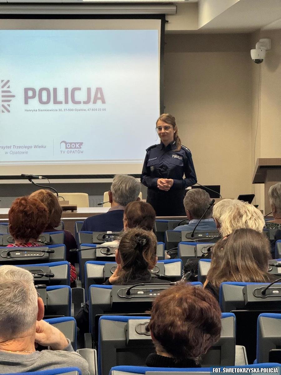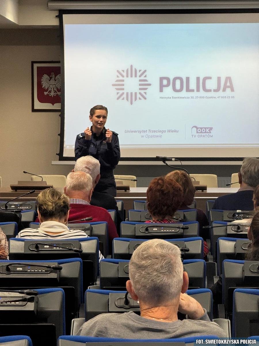 Spotkanie z seniorami rozpoczął Członek Zarządu Powiatu w Kielcach, Pan Mariusz Ściana, przedstawiając prelegentów. Swoje cenne rady w formie krótkich wykładów przedstawili: psycholog PCPR w Kielcach – Lidia Świeboda – Toporek, Prezes Stowarzyszenia Aktywny Ćmińsk – Renata Ferd. W seminarium poświęconym seniorom nie mogło zabraknąć funkcjonariuszek z kieleckiej komendy, dla których bezpieczeństwo osób starszych jest jednym z priorytetów. Zagadnieniem poruszanym przez policjantki było zapoznanie z najnowszymi zagrożeniami ludzi starszych. Seniorzy dowiedzieli się, jakie metody stosują przestępcy oszustw m.in. „na wnuczka”, „na pracownika spółdzielni mieszkaniowej” czy „na pracownika banku” oraz jak nie stać się ofiarą przestępstwa. Mundurowe przestrzegały również przed niewłaściwym zabezpieczaniem mienia oraz przekazywaniem pieniędzy osobom nieznajomym czy podającym się za funkcjonariusza policji. Ponadto policjantki opowiedziały o zasadzie ograniczonego zaufania w ruchu drogowym oraz poleciły stosowanie odblasków. Seniorzy dowiedzieli się także jak działa, do czego służy i jak się posługiwać policyjną aplikacją „Krajowa Mapa Zagrożeń Bezpieczeństwa”. Jest to doskonałe narzędzie do anonimowego zgłaszania zagrożeń bez wychodzenia z domu.