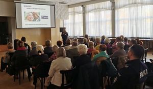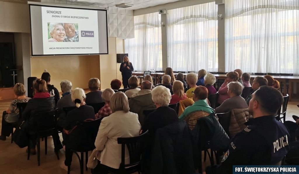 Funkcjonariusz Wydziału Prewencji Komisariatu Policji I w Kielcach – profilaktyk asp. Nina Bąk w nawiązaniu do tematu przewodniego debaty, przedstawiła uczestnikom spotkania oszustwa „na wnuczka”, „na policjanta”, „na inkasenta/urzędnika” wskazując na osoby starsze najbardziej narażone tego typu przestępstwami oraz zapoznała z najnowszymi zagrożeniami w cyberprzestrzeni wobec osób starszych, omawiając jakie nowe zagrożenia wykorzystujące metody tzw. psychomanipulacji pojawiły się ostatnio w sieci Internet. W związku z ogólnopolską akcją pod hasłem „Świadome decyzje – Bezpieczny senior” podczas prelekcji szczegółowo omówiła zasady bezpieczeństwa osób starszych – zarówno tego osobistego, jak również finansowego i cyfrowego, przedstawiła również sposoby postępowania umożliwiające uniknięcia oszustwa i pozostania jego ofiarą.