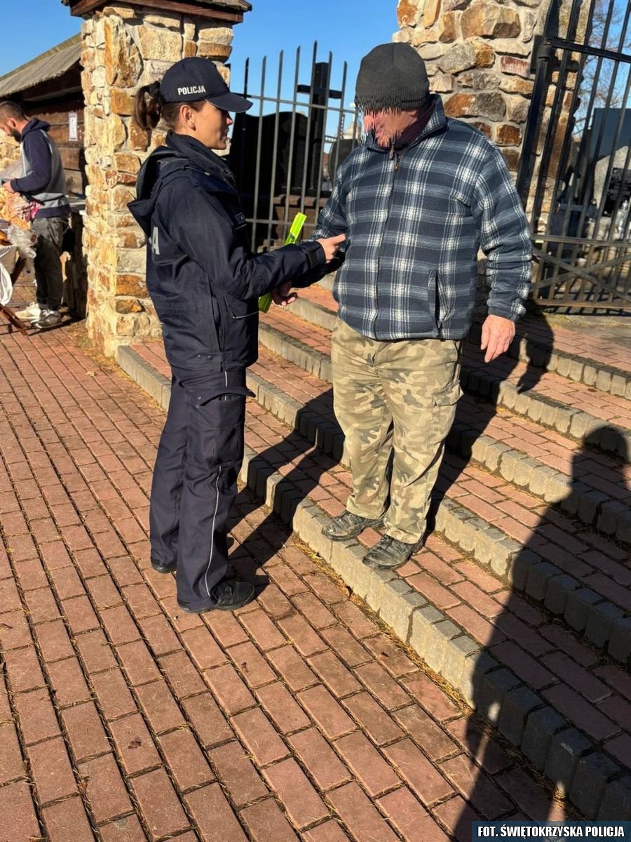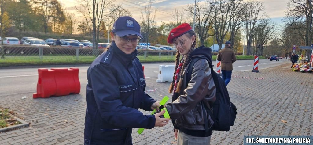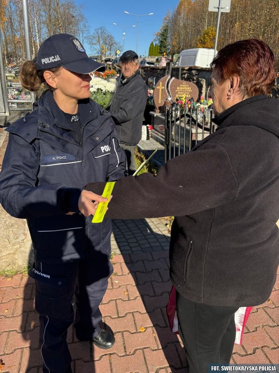 Mundurowi z Wydziałów Prewencji oraz Ruchu Drogowego Komendy Miejskiej Policji w Kielcach, w związku z akcją „Znicz 2025” pojawili się dziś w okolicy cmentarzy zlokalizowanych w Kielcach, Chmielniku, Bielinach oraz Zagnańsku. Rozdawali pieszym odblaski i przypominali, że elementy odblaskowe to najprostszy sposób na poprawę bezpieczeństwa pieszego w ruchu drogowym. Dzisiejsze działania zostały przeprowadzone we współpracy ze Starostwem Powiatowym, które przekazało elementy odblaskowe, które trafiły do rąk mieszkańców naszego regionu.