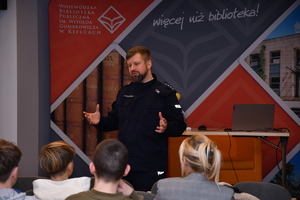 Wczoraj w Wojewódzkiej Bibliotece Publicznej w Kielcach funkcjonariusze z Komisariatu Policji IV w Kielcach przeprowadzili spotkanie edukacyjne na temat przemocy rówieśniczej w kontekście odpowiedzialności prawnej nieletnich. W zajęciach wzięli udział uczniowie klas ósmych Szkoły Podstawowej nr 22 w Kielcach oraz grono pedagogiczne.